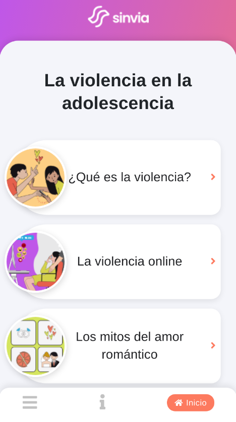 De acuerdo con lo dispuesto en el artículo 10 de la Ley 34/2002, de 11 de julio, de Servicios de la Sociedad de la Información y de Comercio Electrónico (“LSSI”), ponemos en su conocimiento que la aplicación SINVIA (en adelante la APP) es una aplicación operada por ASOCIACIÓN DE MUJERES PARA LA FORMACIÓN Y EL DESARROLLO (AMFORMAD), con CIF G16166985, inscrita en el Registro Nacional de Asociaciones Grupo 1 Sección 1 Número Nacional 500866., cuyo domicilio se encuentra en la Calle Téllez 58, 28007 Madrid, España.